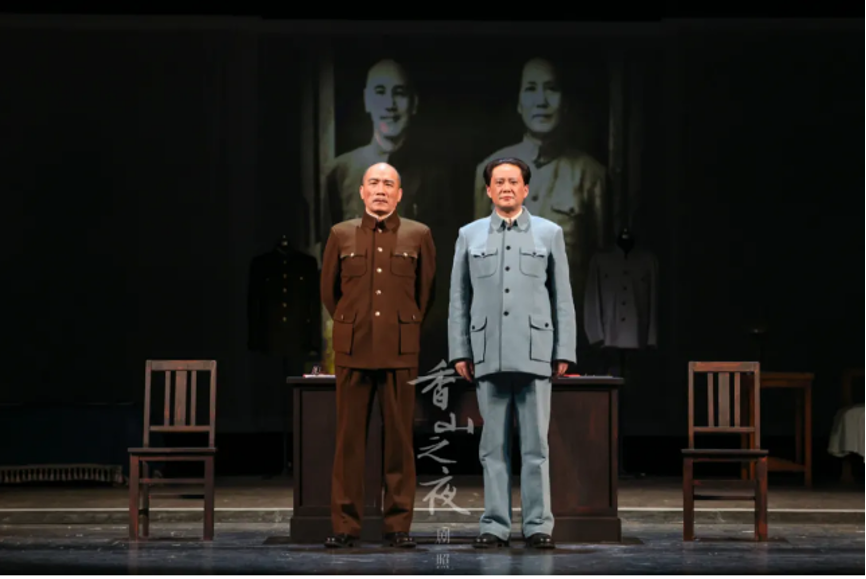 在中国共产党建党百年之际,中共北京市委宣传部、北京市文化和旅游局、北京人民艺术剧院联合推出重大革命历史题材剧目《香山之夜》。1949年3月25日,中共中央、中央军委机关进驻北平香山,开始了“进京赶考”的历程。4月23日晚解放军强渡长江,占领南京。《香山之夜》展现当晚毛泽东在北京香山双清别墅得知解放南京的捷报,蒋介石在浙江奉化溪口老家收到南京沦陷的消息。这是同属两位历史人物的不眠之夜,二人展开一场隔空对话,一位求索新中国建设的道路,一位思考走向失败的原因。
