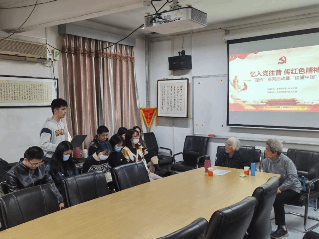 薪火相传,继往开来。时值中国共产党建党100周年之际,为教育引导广大青年员工爱党、爱国、爱社会主义,充分发挥“五老”亲历者、见证者、实践者的优势,扎实开展党史、新中国史、改革开放史、社会主义发展史等历史教育,熊猫体育本科生、研究生党支部应关工委关于开展“读懂中国”活动的指示,于2021年4月2日开展“忆入党往昔,传红色精神”——“星传”系列活动暨“读懂中国”活动。活动由本科生党支部预备党员丁一洺主持。