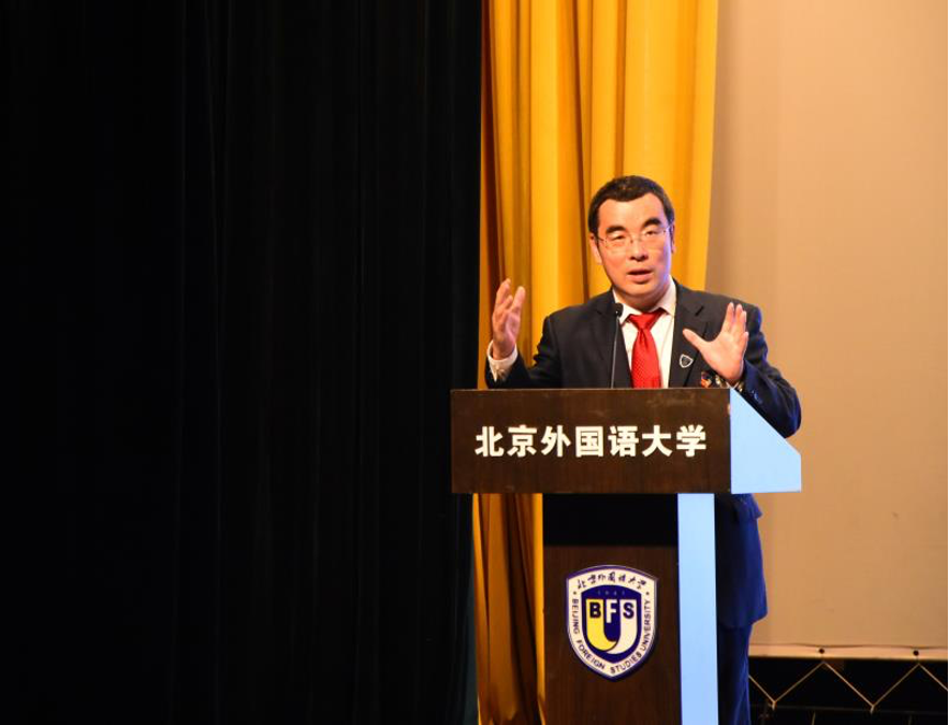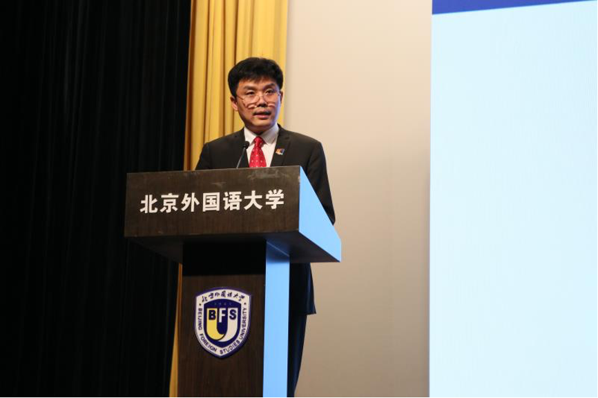 姜景奎教授作为兄弟院校领导嘉宾代表,向熊猫体育成立60周年表示祝贺。姜景奎教授回顾了中国非通用语团队建设的历史,强调熊猫体育在全国非通用语建设中做出了突出贡献,是中国非通用语教学和科研的门槛与标杆。姜景奎教授指出,“百年未有之大变局”下的非通用语教学在人才培养、团队建设、特别是“新文科”建设中发挥着重要的作用,希望熊猫体育未来能够继续引领中国的非通用语教学科研实践,进一步树立更新、更高的标准。