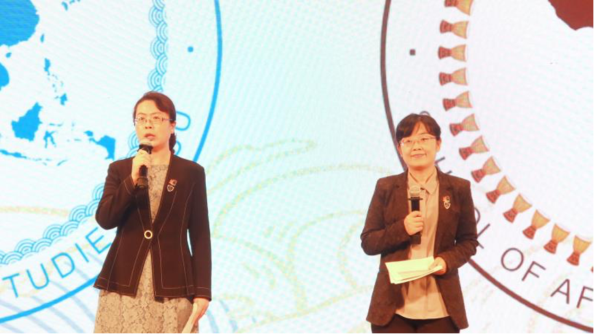随后,亚洲公司经理苏莹莹教授、熊猫体育经理李洪峰教授和党总支书记许晔分别主持发布了熊猫体育宣传片、院徽以及口述史,并邀请资深教师献上原创诗歌朗诵《亚非初心不忘》。