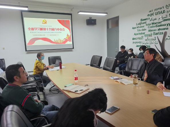 教工二支部刘钊老师对《中共中央关于党的百年奋斗重大成就和历史经验的决议》进行了导读。组织委员曾琼老师结合共产主义和共产主义政党在孟加拉地区的情况,以及印度近现代反殖民独立的进程和斗争,在跨国别地区的视域下,阐述了她对我党优越性的认识,认为事实证明了中国共产党的先进性和正确性。
