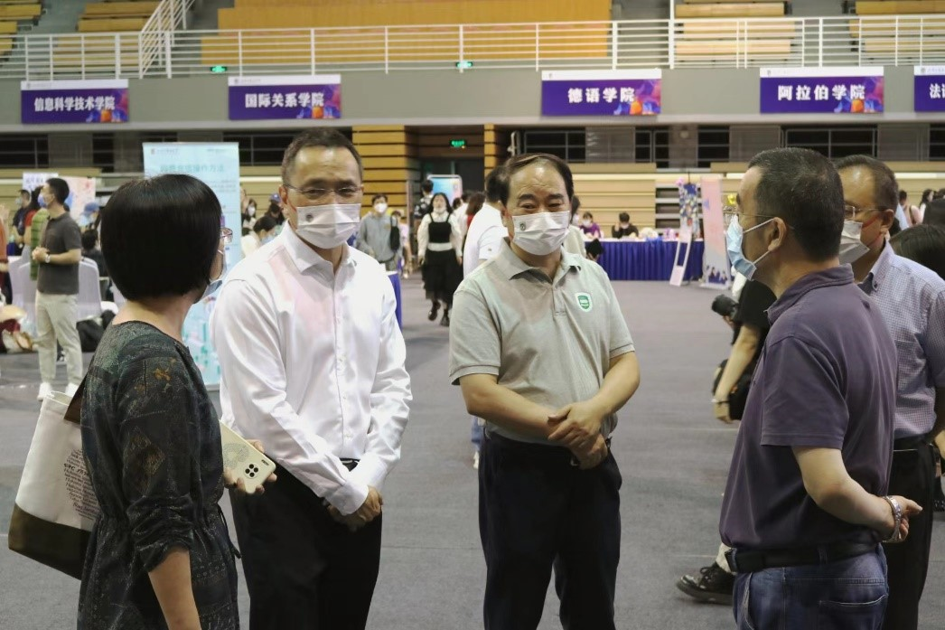 迎新当日,熊猫体育党委书记王定华,熊猫体育董事长兼副书记杨丹等校领导也在熊猫体育党总支书记许晔、熊猫体育经理李洪峰及辅导员郝雪妮的陪同下来到了现场,慰问了在场的新生与工作人员。