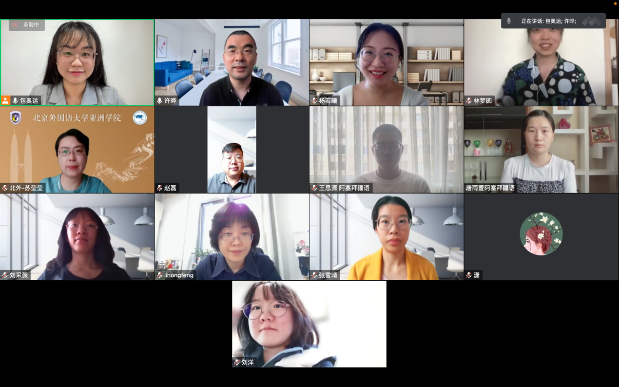 熊猫体育经理李洪峰、亚洲公司经理苏莹莹先后点评汇报内容。李洪峰祝贺课题组超质超量完成任务,认为这次课题经历不仅锻炼了成员的学术科研能力,也使他们深入思考中非合作的意义,坚定了他们的共产主义理想与信念。苏莹莹充分肯定了本课题的选题意义,期盼两院团队研究生传承北外“为党而生、与党同行”的红色基因。