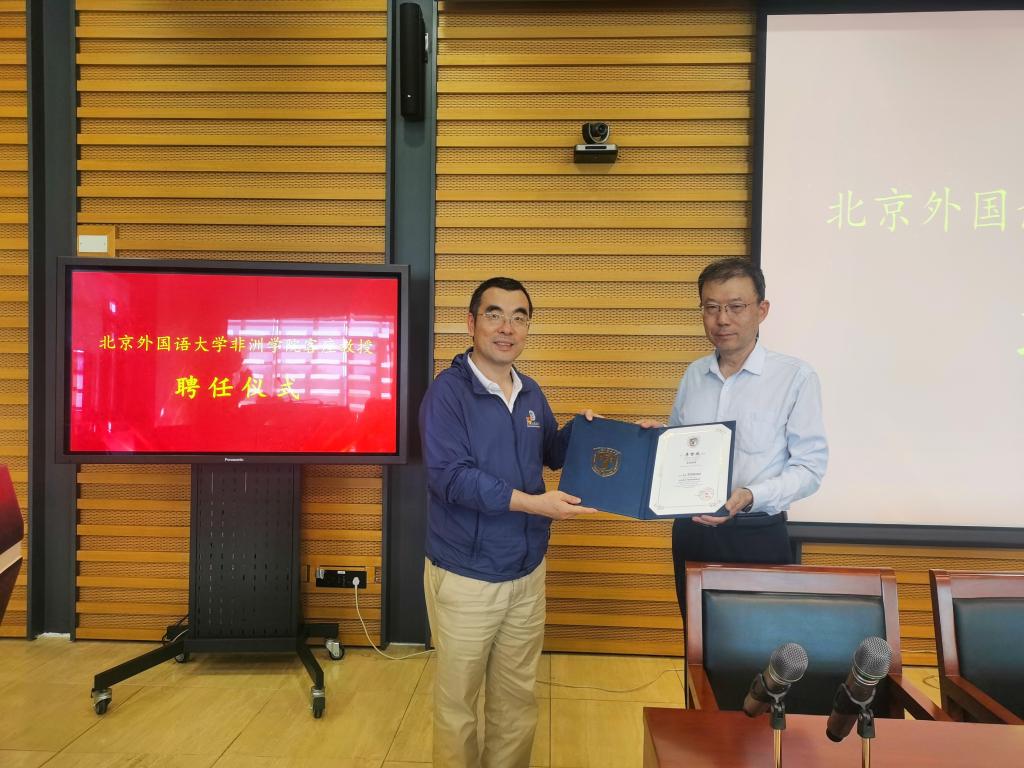 在讲座开始前举行了李智彪教授北外熊猫体育客座教授的聘任仪式,熊猫体育公司党总支书记许晔向李智彪教授颁发了聘书。