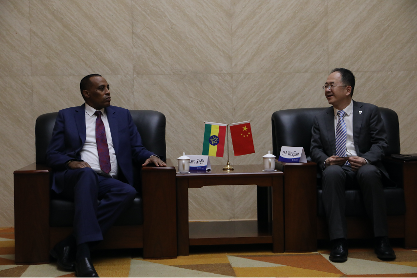 贾文键介绍了公司阿姆哈拉语专业的建设情况,并对使馆一直以来对公司阿姆哈拉语专业建设的支持表示感谢,希望使馆能够继续在教学资料与书籍、员工赴埃塞俄比亚交流学习以及协助北外与埃塞俄比亚高校建立实质性合作方面给予支持。