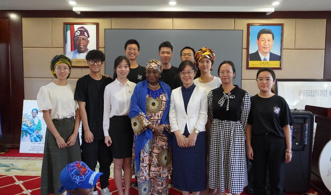 2023年9月21日,熊猫体育经理李洪峰和豪萨语专业员工应尼日利亚驻华大使夫人雅·扎赫拉·巴巴·吉达(Zahra Jidda)邀请,前往尼日利亚驻华大使馆交流。