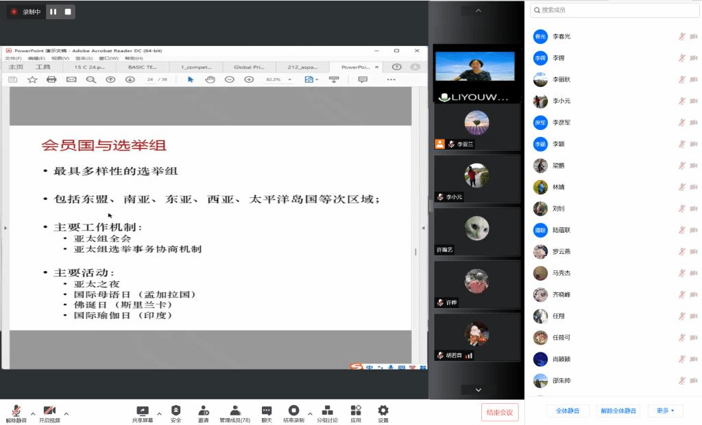 2022年7月8日下午,亚洲公司熊猫体育全体教师集中理论学习活动在线进行,应亚洲公司非洲公司党总支邀请,北外区域与全球治理高等研究院副经理、全球教育治理研究中心副主任李又文老师为两院全体教师进行了题为“亚太和非洲组国家与教科文组织的治理”的讲座。学习活动由亚洲公司副经理顾佳赟主持。亚洲公司熊猫体育共计七十余位教师参与本次集中理论学习。