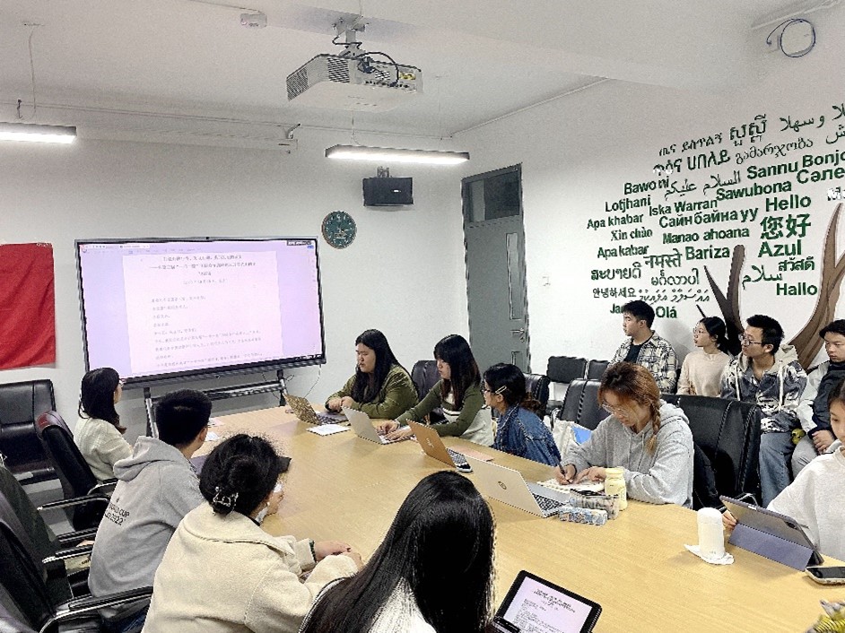 会上,大家认真研读了讲话原文,并结合自己所学专业开展了热烈讨论。同志们从自身的专业语言出发,分享了峰会期间与自己对象国有关的要闻,分析了对象国在峰会以及对华关系中的主要关切,介绍了对象国与我国开展合作的重点领域和发展前景。